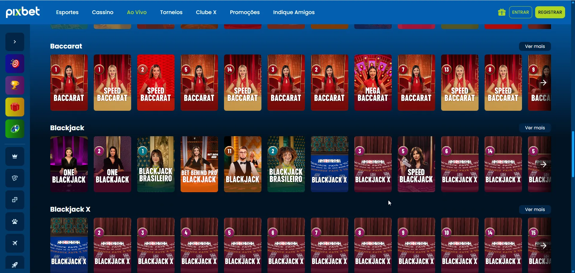 | Blackjack/Bacará ao vivo | Evolution | Infinite Blackjack, Speed Baccarat | Side bets (21+3, Perfect Pairs), “Seat-in” ilimitado (Infinite) | Até ~99.5% (conforme regras/estratégia ótima) |